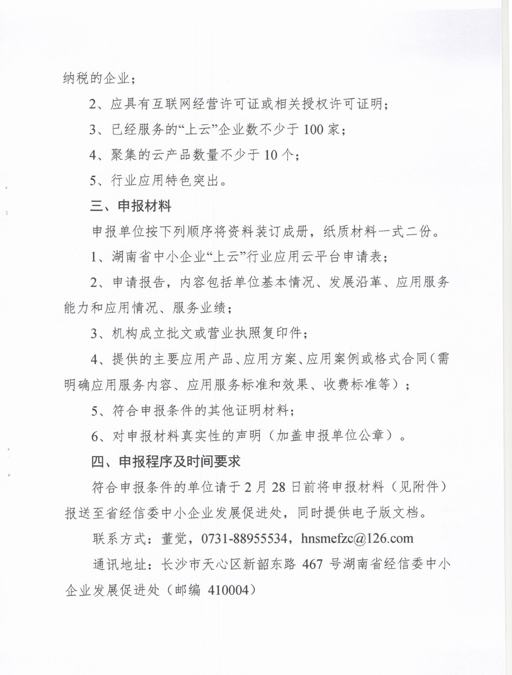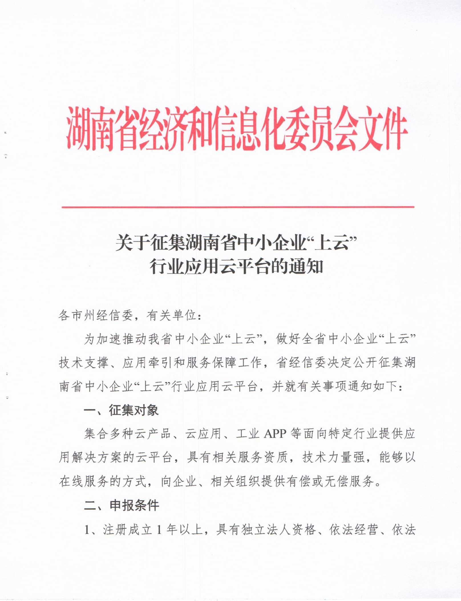 关于征集湖南省中小企业“上云”行业应用云平台的通知