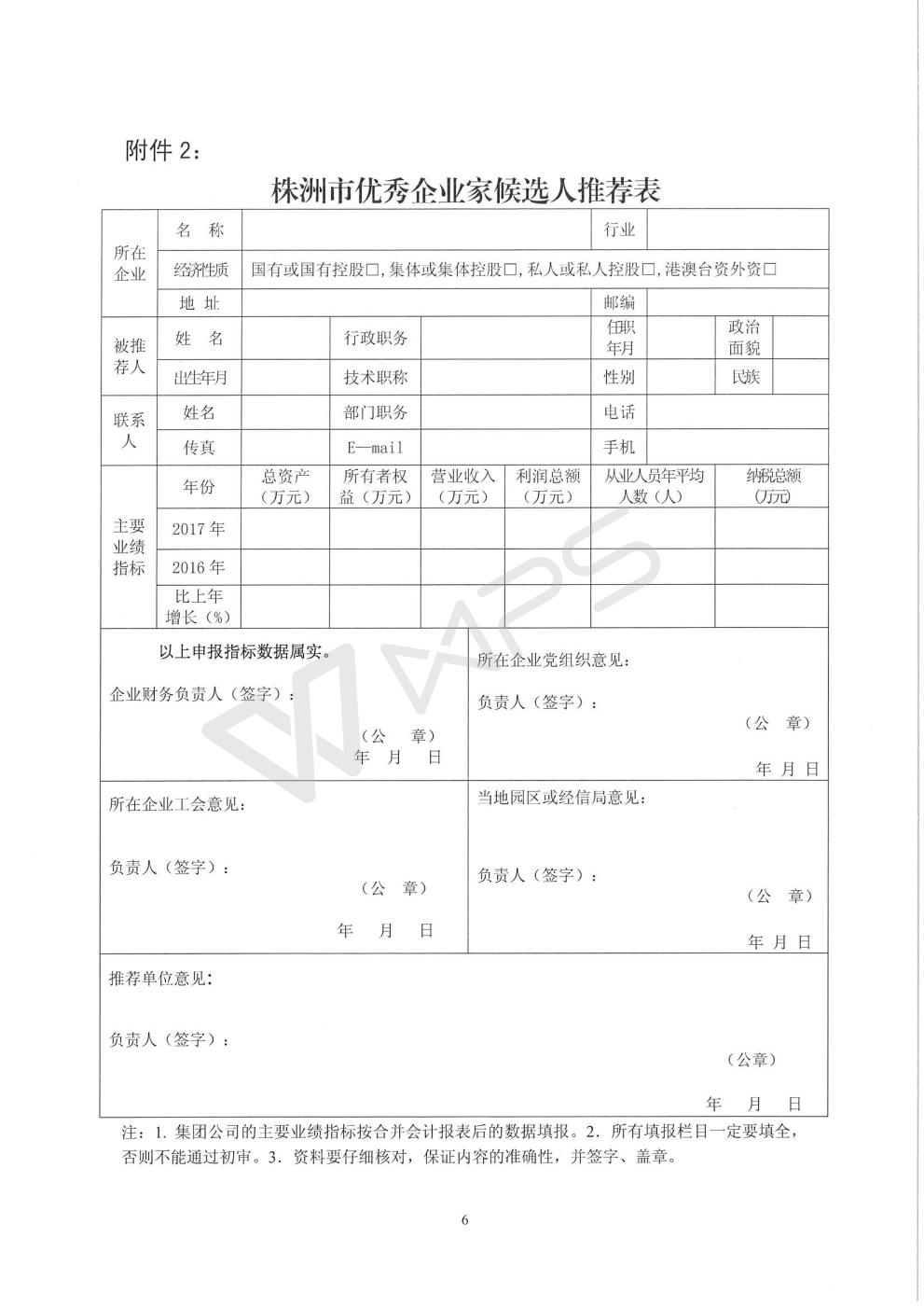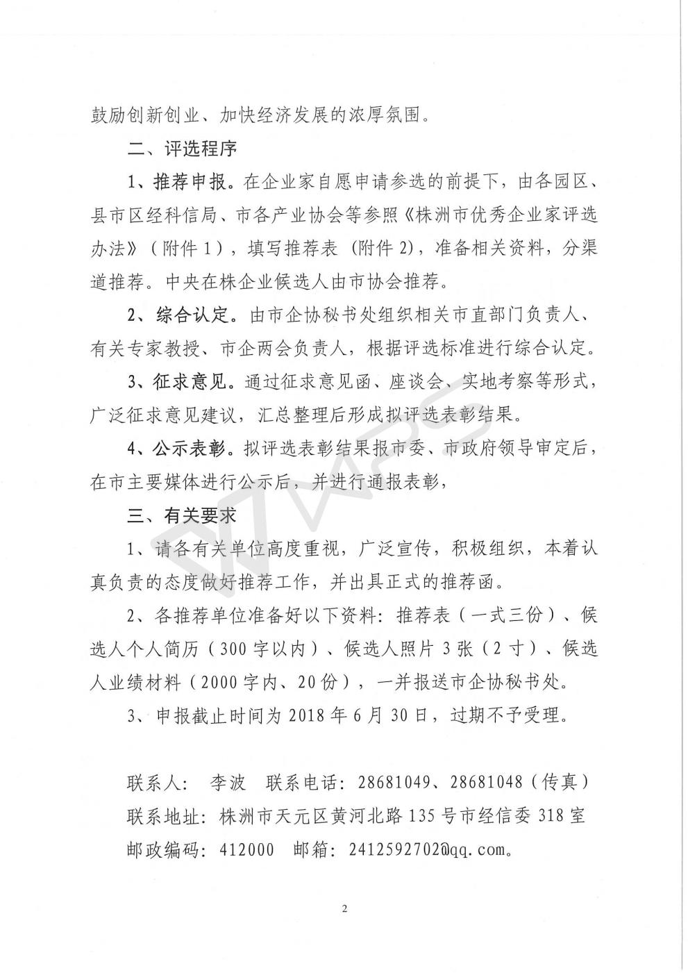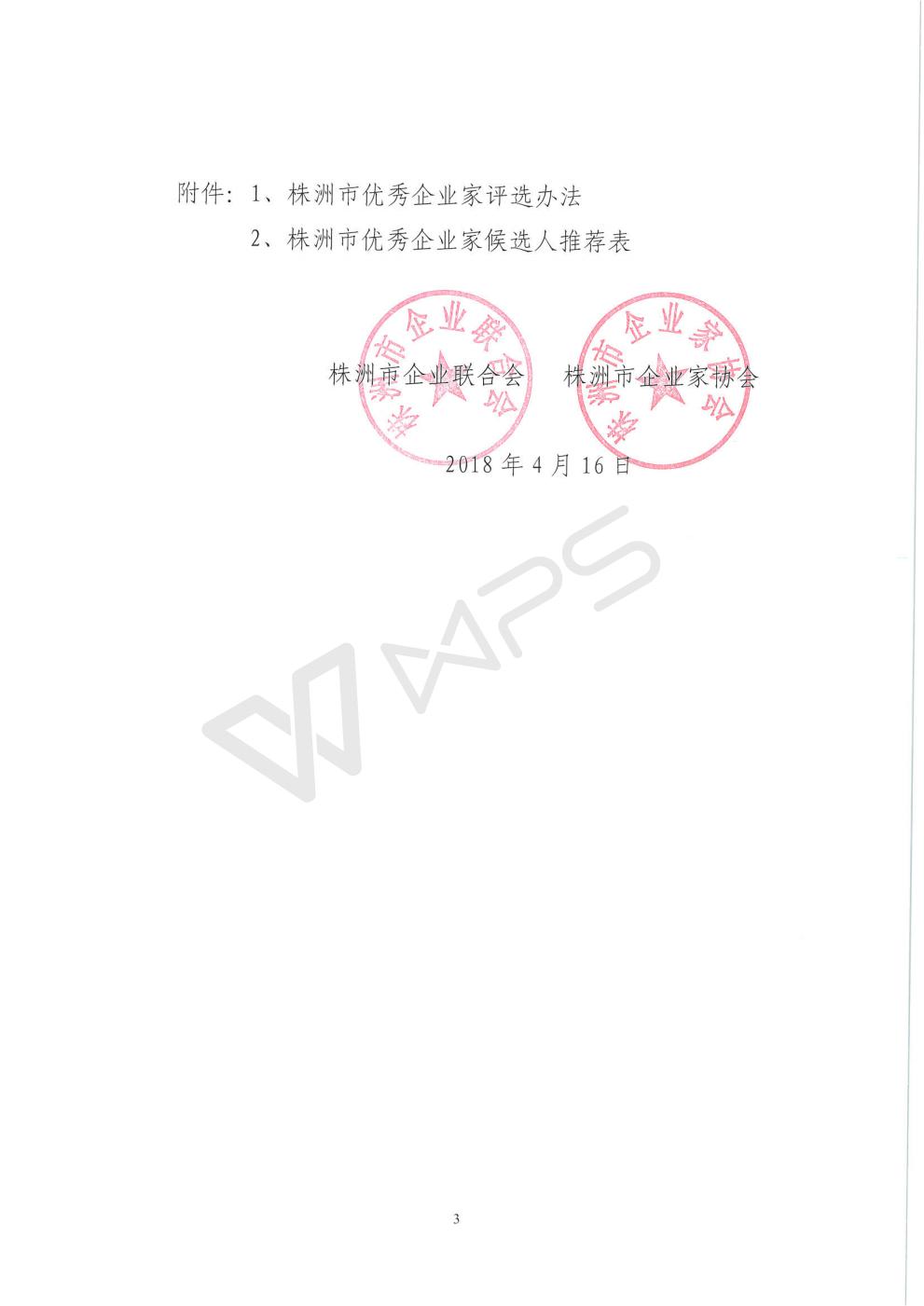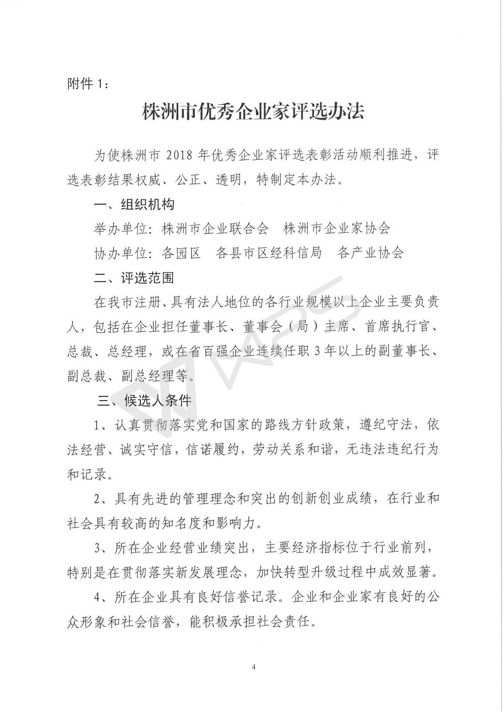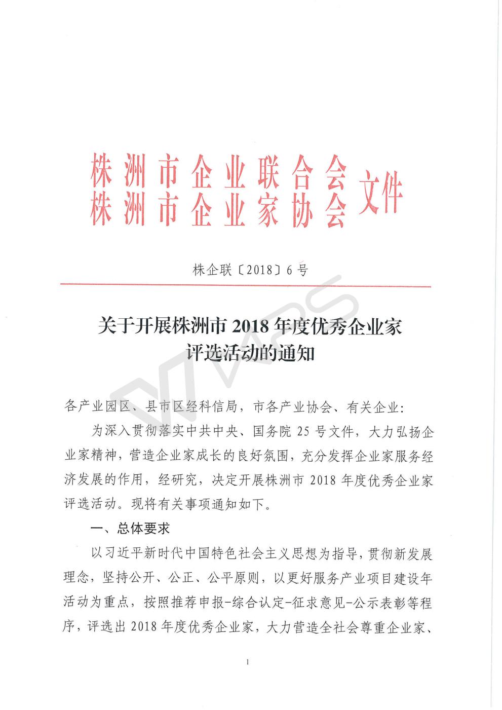 关于开展株洲市2018年度优秀企业家评选活动的通知